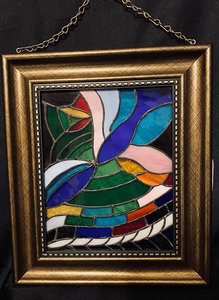 Beautiful hand crafted stained glass art by Ellen Kerns Father measures 11x14 with frame