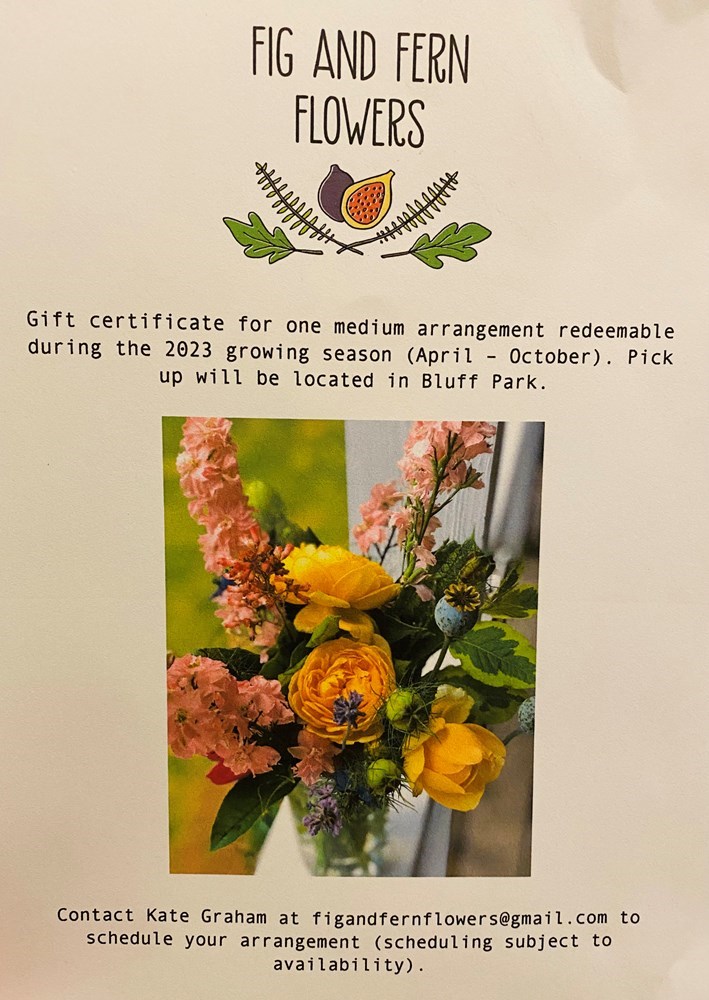 Delight in the beauty of flowers! Treat yourself or someone else with this gift certificate good for one custom, made to order arrangement by Fig and Fern by Kate Graham. Good during growing season through October Fig and Fern is a small scale urban flower farm and flower design studio in Bluff Park that offers seasonal cut flower arrangements, a fresh flower subscription program, corsage work, and freelance flower design services. We specialize in heirloom roses, dahlias, and southeastern natives. Spring and summer event bookings are underway, so contact us if you want fresh, eye-catching, locally grown blooms on your table this year. Subscription season is currently open for 2023 flower subscriptions, which run through October. Does your business need a regular supply of flowers to cheer up your entryway? Contact us at figandfernflowers@gmail.com and let’s connect.