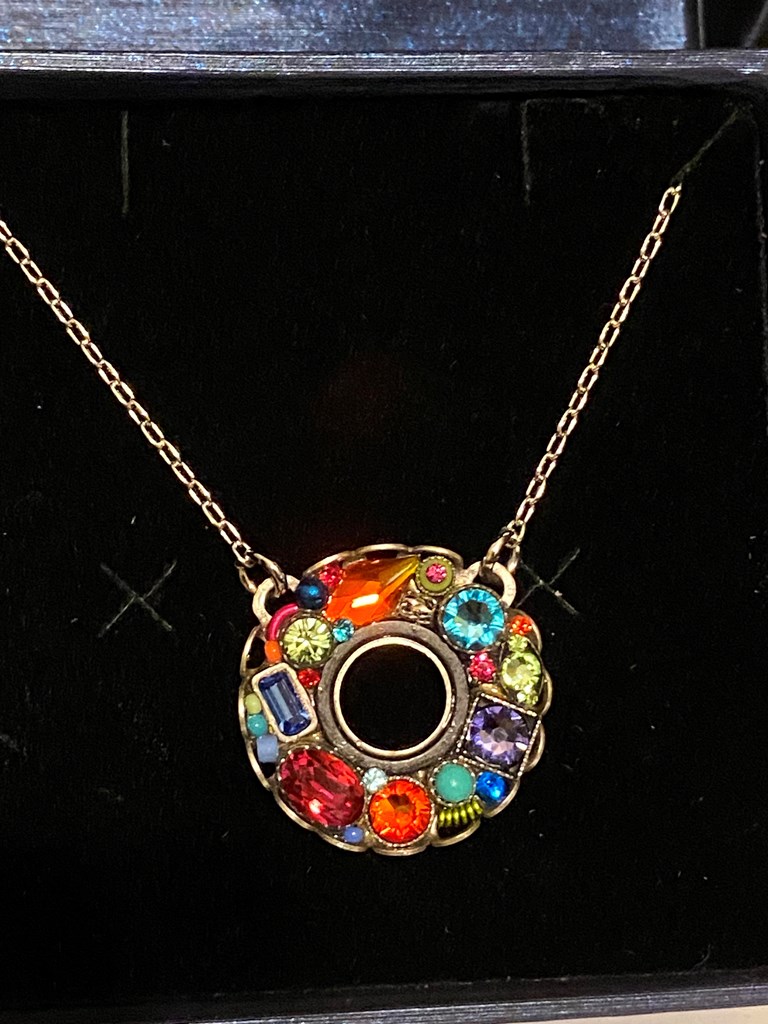 Firefly is a stunning line of hand-crafted, artisan jewelry featuring colorful mosaic designs and Swarovski crystals. This round pendant necklace is a gorgeous piece! From Alan and Co jewelers