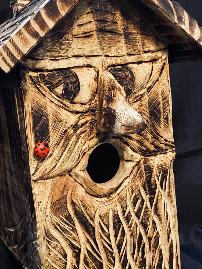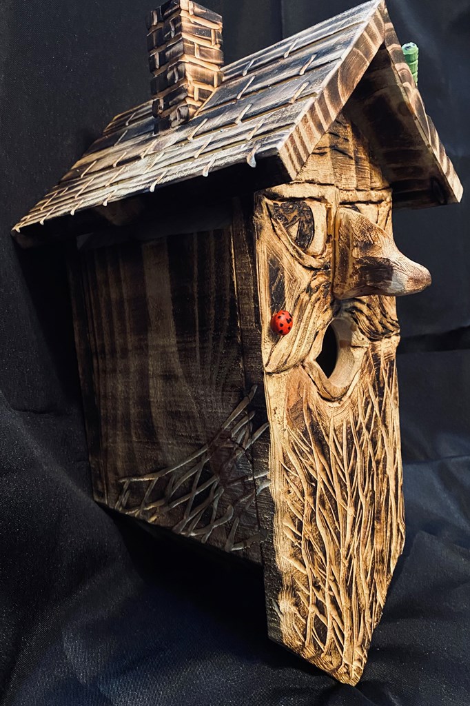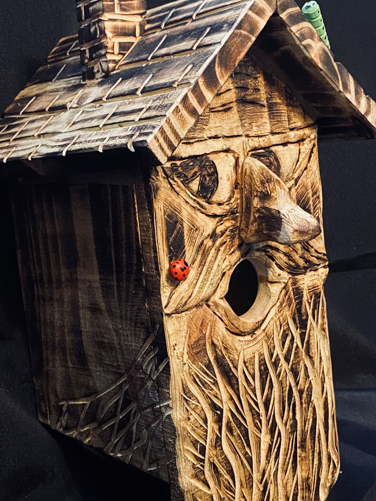 Your feathered friends are sure to love this gorgeous hand carved birdhouse by Richard Strahan. The birds will flock to be able to live in this fine piece of real estate and it will be a beautiful art piece in your yard!