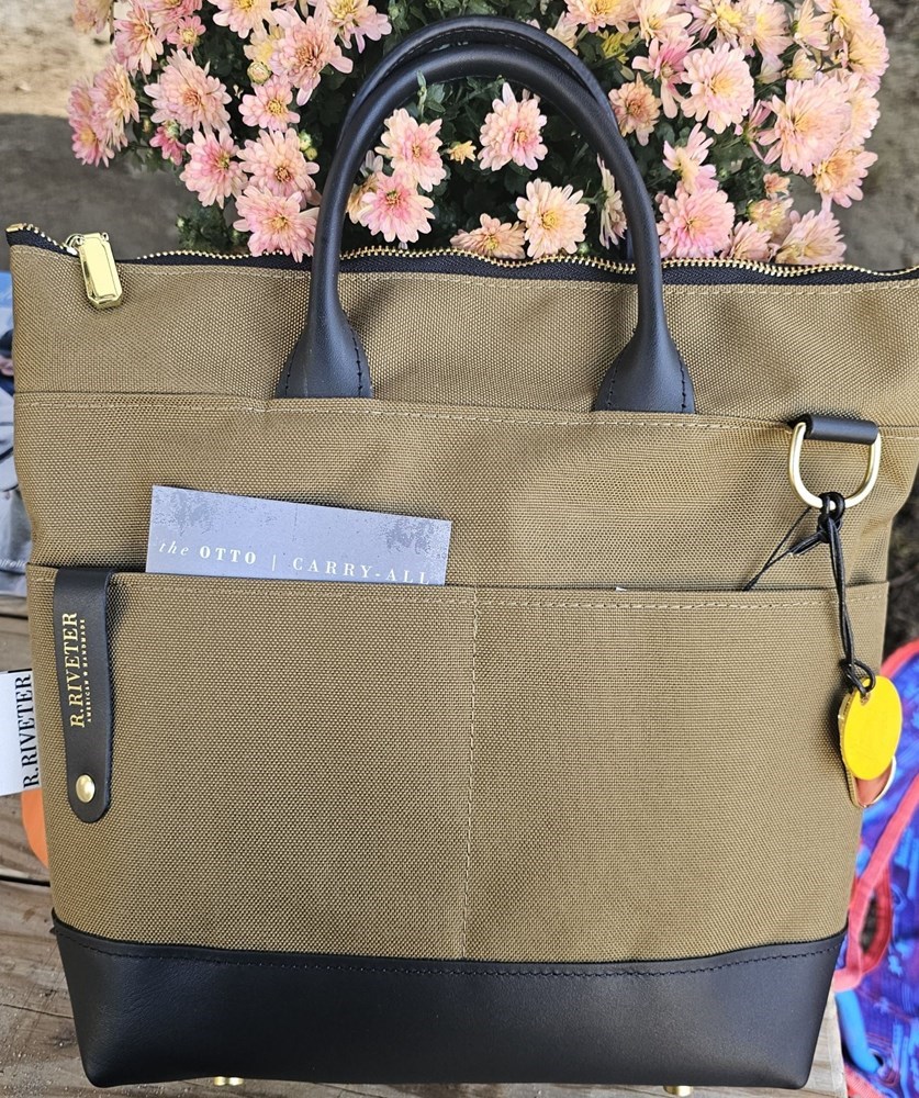 MEET THE OTTO - A MEDIUM TOTE THAT PACKS A SERIOUS PUNCH. Perfect for work, a day out, or a casual weekend trip, this tote combines style with practicality. The Otto is where elegance meets full function, offering the modern woman a way to look good, feel good, and do good simultaneously. Its sleek, versatile design is the perfect balance of form and function, ensuring ample space for essentials, promising comfort and convenience throughout the day. Balancing size and functionality, it offers ample space for your daily essentials without overwhelming your frame. More info and pictures on the uber-fabulous Otto bag can be found here on R. Riveter website. https://www.rriveter.com/collections/all-bags-v2/products/otto-fatigue-nylon-brown-leather