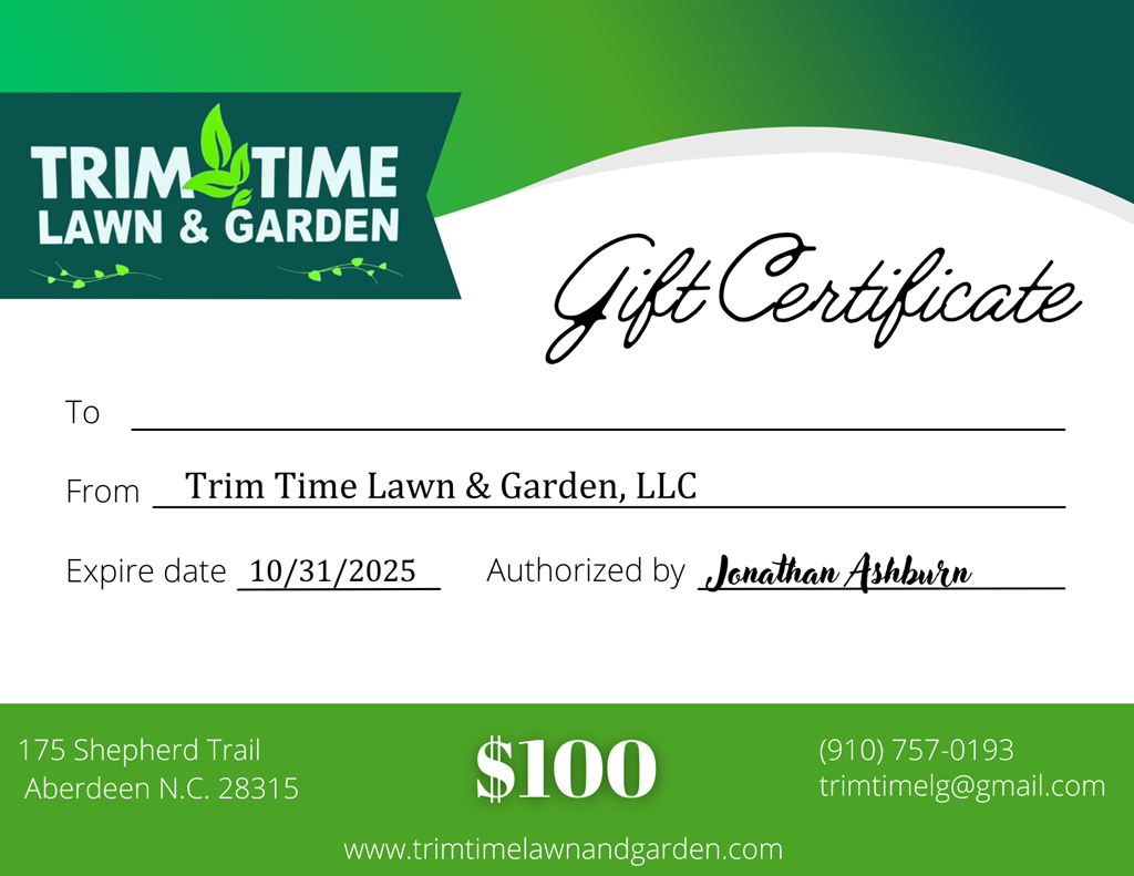 $100 gift certificate to Trim Time Lawn & Garden